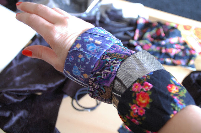 Schritt 4: Die Stoffreste werden um die Reife gewickelt, man muss die richtige Wickeltechnik erst finden, je nach Wickelart entstehen ganz andere Muster. Tipp: die Ränder der Stoffe immer ein wenig umschlagen – das sieht ordentlicher aus.