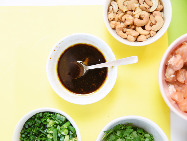 In Portugal hab ich eine Poké-Bowl mit Lachs, Mango, Avocado und Cashew-Nüssen probiert und war schockverliebt auf den ersten Bissen. Nach unserer Wiederankunft Zuhause habe ich ganz viel mit dem Dressing experimentiert, bis es so schmeckte, wie die leckere Bowl aus Lissabon.