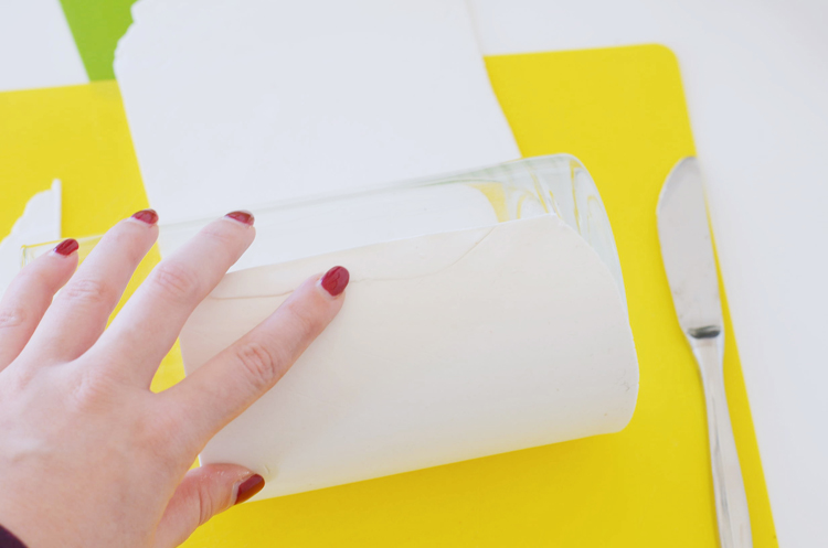 3. Umwickelt dann die Vase und schneidet vor allem die Enden schön gerade ab und drückt die Kanten dann vorsichtig etwas aneinander, damit der Übergang fließend erscheint.