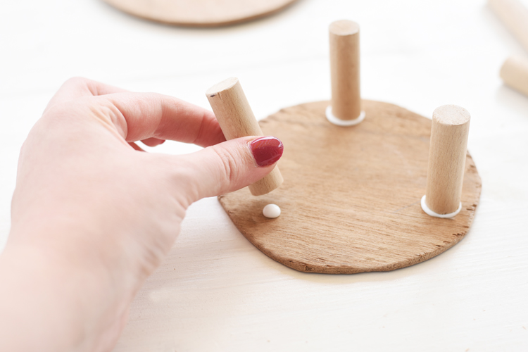 3. Sägt nun sowohl die Rundholz-Stücke, als auch die kreisrunden Holzplatten aus. Mit der Laubsäge dauert es länger, wird aber akkurater. Mit der Stichsäge geht es fix, aber ihr lauft eher Gefahr, dass das Holz splittert oder ihr euch versägt.