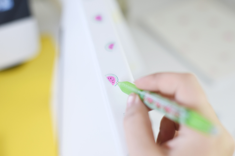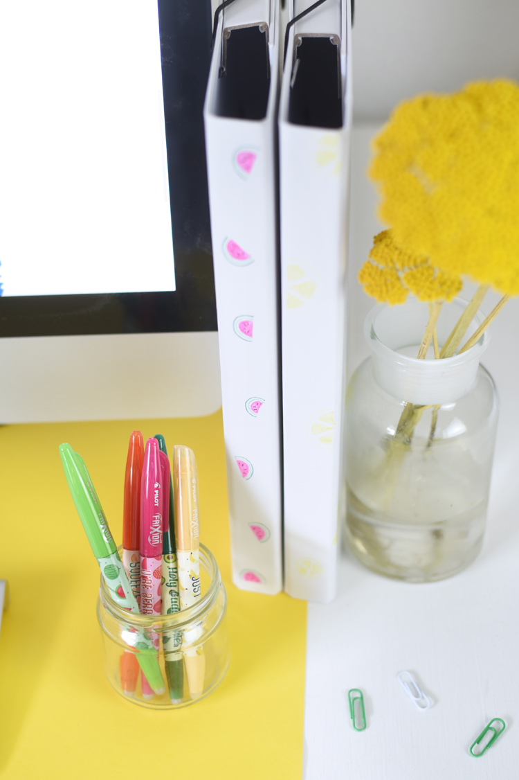 Vielleicht wollt ihr euch ja von meinen fruchtig designten Stiften und meinem Schreibtisch-Makeover etwas inspirieren lassen. Dank der einheitlichen Gestaltung mit den Frixion-Stiften wirkt mein Schreibtisch jetzt viel aufgeräumter und schön bunt und fröhlich!