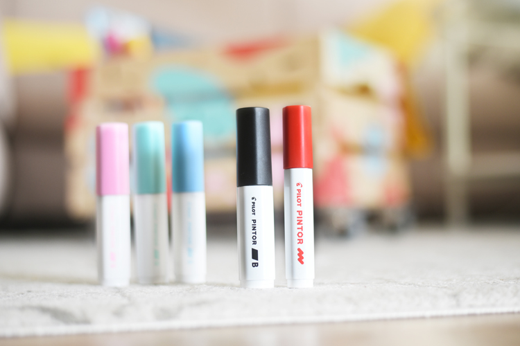 – PILOT PINTOR-Marker in den Tönen: Pastel Green, Pastel Pink, Pastel Blue, Red, Black