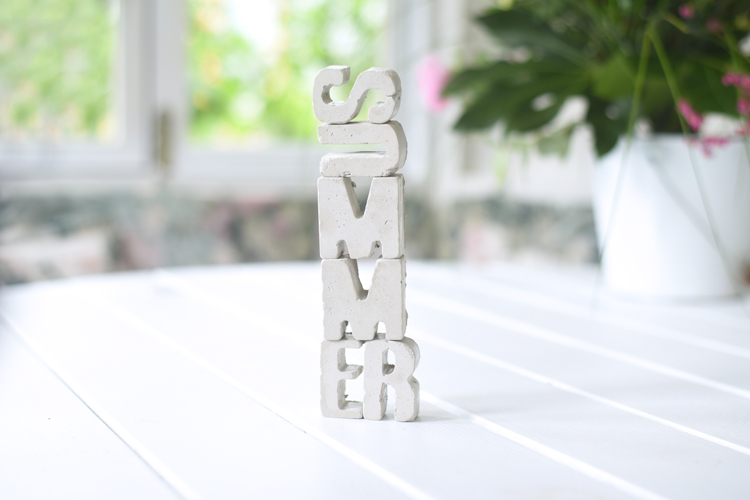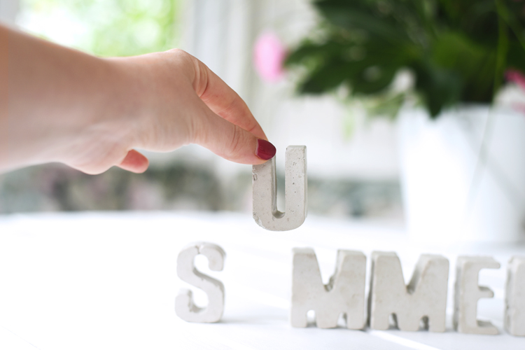 Was die Situation gerade aber so viel leichter macht, ist der bevorstehende Sommer und das tolle Wetter der letzten Wochen hat uns ja schonmal gut eingestimmt. Das hat mich auch zu meinem DIY-Projekt zur DIY-Challenge inspiriert. Da lautet das Thema nämlich “Typo” und alles rund um das Thema “Schrift” – da passen meine sommerlichen Betonbuchstaben doch gut rein.
