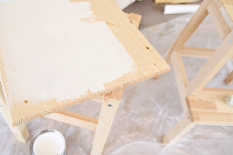 Jetzt könnt ihr alles in 2-3 Schichten mit der weißen Farbe streichen. Ich verwende dazu gerne Farbrollen, so wird das Ergebnis besonders ebenmäßig. Bei der Farbe habe ich mich für “arcticweiß” entschieden. Ich mag den Gelbstich in vielen Farben nicht