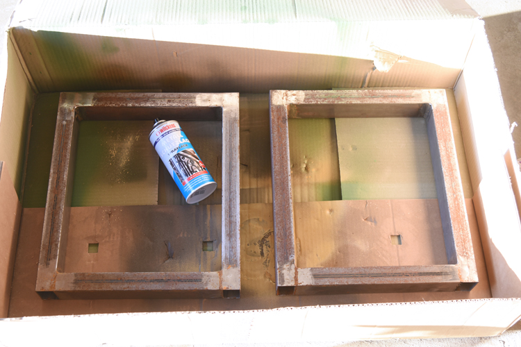 Die nackten Stahl-Kufenbeine werden jetzt noch mit Metallic-Spray besprüht. Sprüht die Farbe mit Abstand ganz fein und in mehreren Lagen auf. Achtet beim Spray drauf, dass Anti-Rostschutz enthalten ist.
