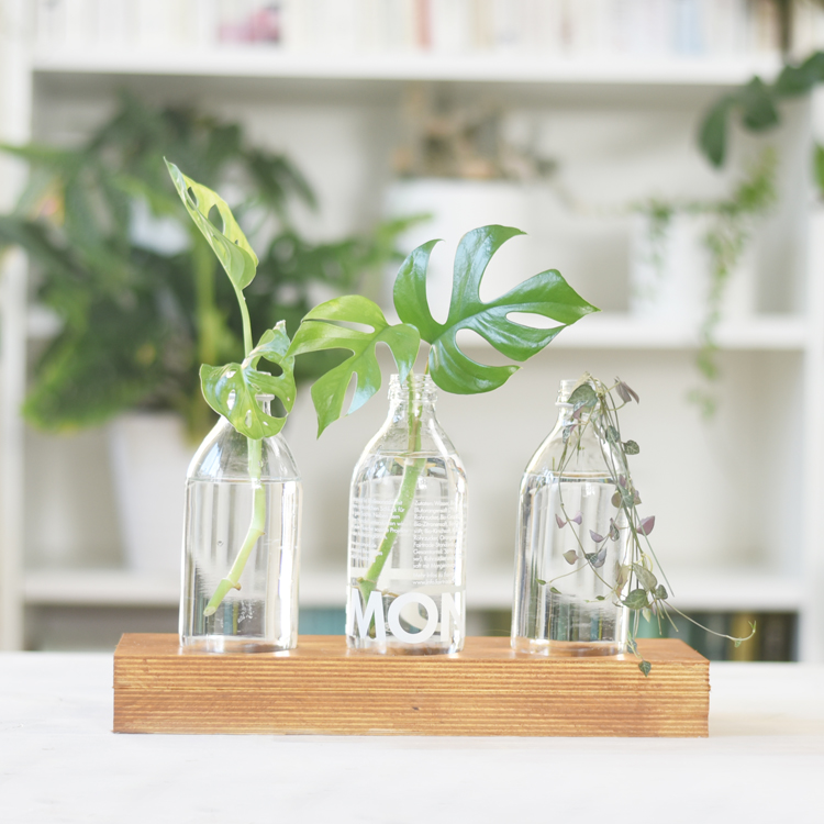 Eins meiner allerliebsten Pflanzen-DIYs ist das hier. Ich mag auch meine diversen selbstgebauten Pflanzenständer gern, aber dieses Mini-Pflanzregal für Ableger ist wirklich ultra praktisch und dekorativ. Bisher standen meine Ableger nämlich in diversen Gläsern wild auf dem Fensterbrett rum – so aufgeräumt sieht es aber gleich viel schöner aus.