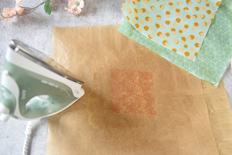 Lasst sie kurz abkühlen – das geht sehr schnell und legt dann ein weiteres Backpapier auf das Tuch. Dann wird gebügelt! Achtet hier unbedingt auf eine Unterlage. Es kann sein, dass etwas vom Bienenwachs beim Bügeln zwischen dem Papier rausdrückt und euch sonst euer Bügelbrett etc versaut. Wichtig ist, dass sich das Bienenwachs gleichmäßig auf dem Tuch verteilt.