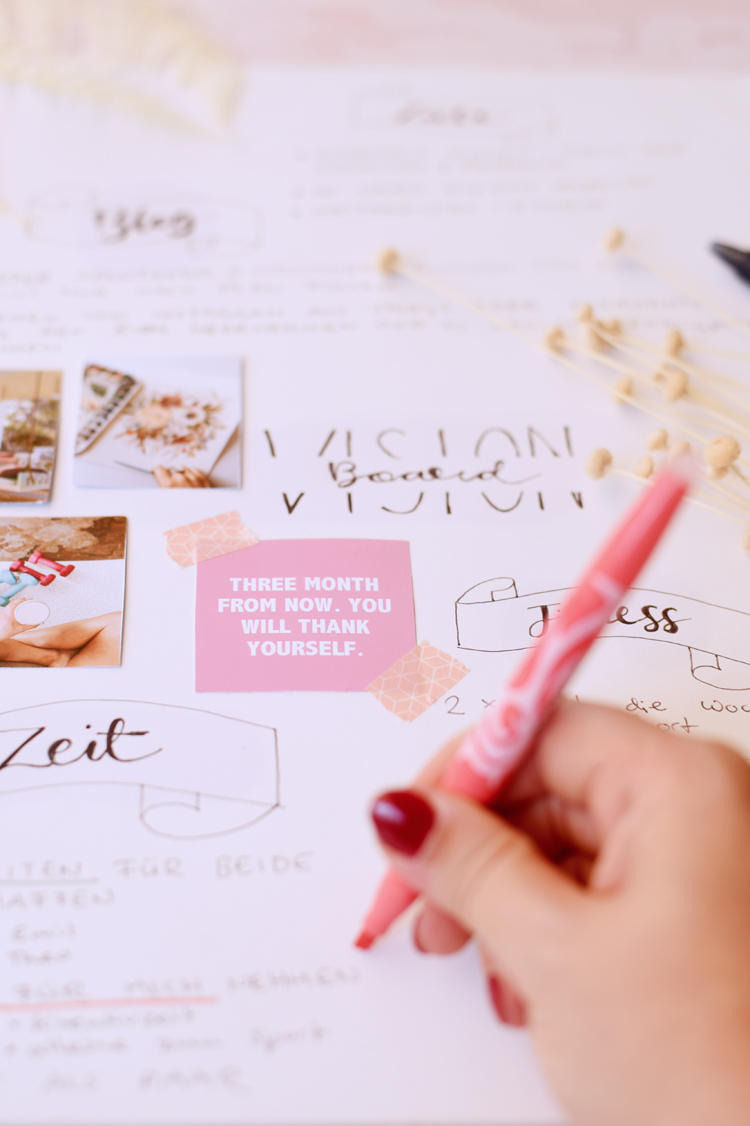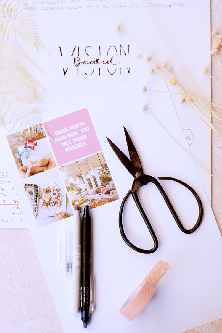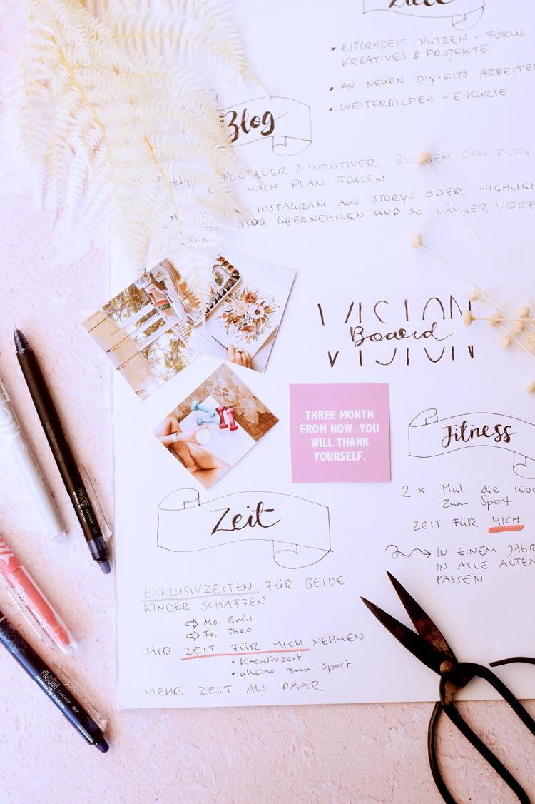 Manchmal sind solche Wünsche und Gedanken etwas wirr. Deshalb finde ich es wichtig, Ideen zu visualisieren. Zum Beispiel in Form eines Vision Boards.