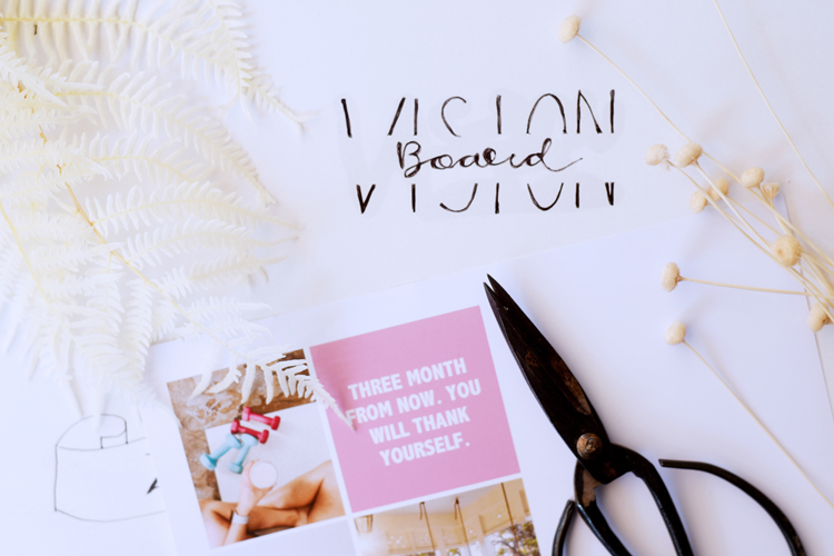 Es fällt uns leichter, Dinge im Kopf zu behalten, wenn wir sie visualisieren. Bilder und Darstellungen helfen, dass wir unsere Ziele mit einem Bild verbinden. Du kannst beispielsweise auf Pinterest, in Zeitschriften, Büchern oder Webseiten nach Fotos suchen, die deinen Zielen entsprechen. Auch Zitate eignen sich für dein Vision Board.