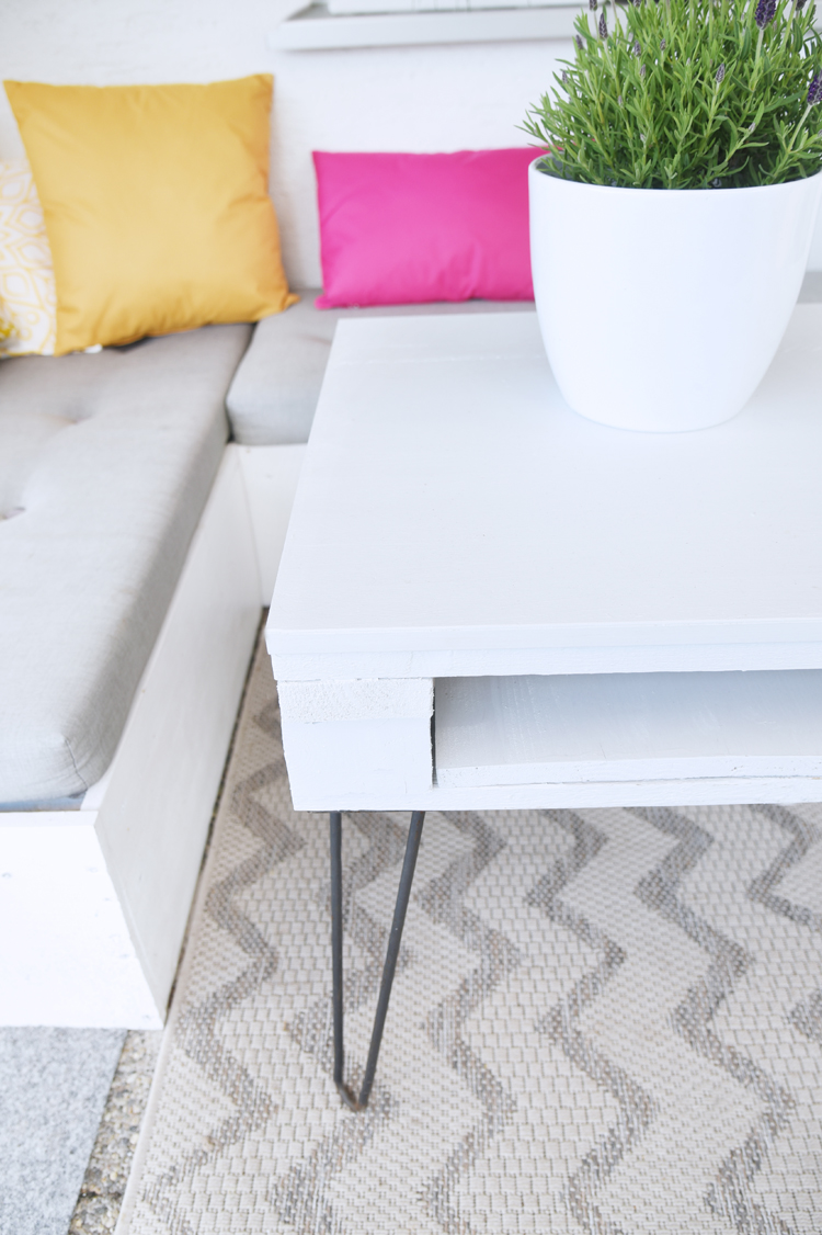 Was bei uns noch fehlte, war ein passender Tisch zu den Loungemöbeln. Die Sitzmöbel haben wir verkleidet, das heißt man sieht nicht mehr, dass es sich um eine Lounge aus Paletten handelt. Beim Tisch wollte ich es etwas offensichtlicher gestalten, weil ich den Charme von Palettenmöbeln auch ganz schön finde.
